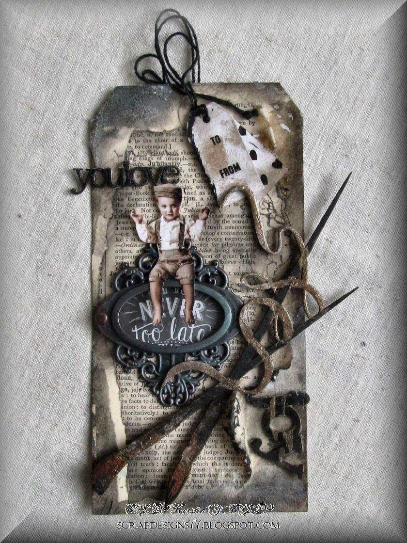 This month the challenge theme is "Cracking up". I decided to make a tag in Altered Art, industrial style, for a friend which has just discovered her joy at painting.